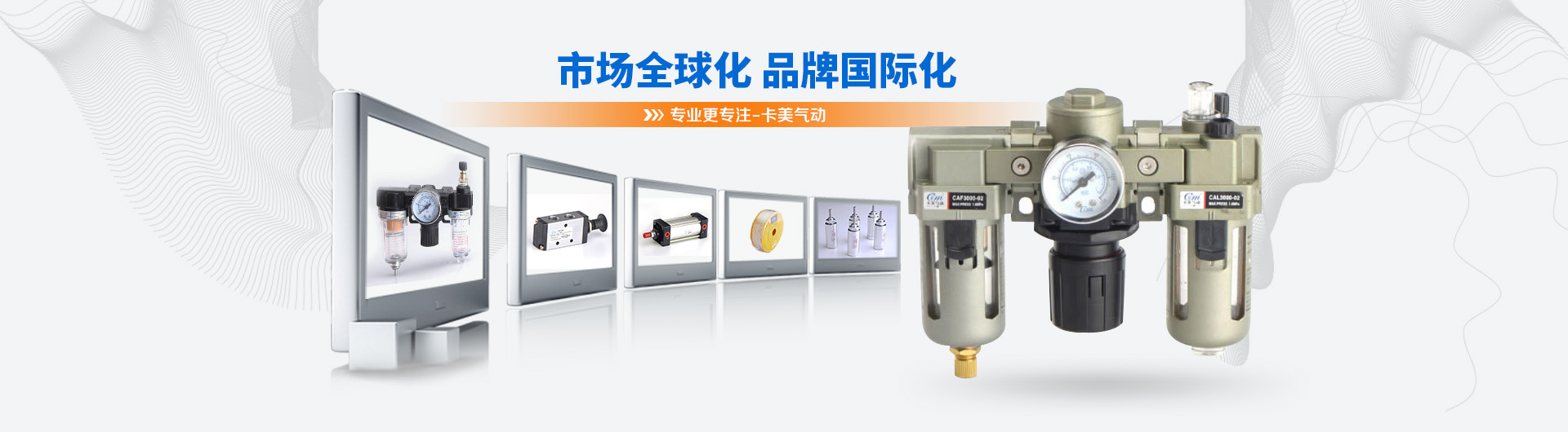卡美氣動有限公司是一家具有現(xiàn)代化生產(chǎn)規(guī)模的專業(yè)開發(fā)、制造氣動元件的公司。主導(dǎo)產(chǎn)品有:氣源處理系列、標(biāo)準(zhǔn)缸、迷你缸、超薄缸、QGB(大直徑)氣缸、雙軸缸、電磁閥、氣動閥、油壓缸、快速接頭、PU氣管等產(chǎn)品。